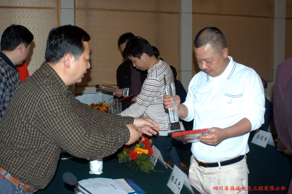 2008年4月18日,四川省南充市建設局在萬泰大酒店召開了2008年建筑業常務理事會并對四川省強波電力工程有限公司等六家企業頒發了經專家組評審的2007年度市優質工程“果州杯”獎。此殊榮是我市建筑業優質工程的最高獎勵也是對我公司2007年工程質量的肯定和鼓勵,我們將不負重望、再接再勵、繼續努力,再創佳績!為我國的電力建設多做貢獻! 四川省強波電力工程有限公司是南充地區唯一的一家具有二級送變電資質的民營企業,強波電力工程有限公司在誠信為本的原則基礎上加強科學管理公司施工勢力雄厚,誠信度高,年年都受到上級部門的嘉獎和投資部門的好評,強波電力工程有限公司不但強化自身建設而且注重社會公益建設對社會的公益活動都積極參加,在2008年1月份公司先后派出300余人前往貴州,云南抗冰搶險,在搶險中四川省強波電力工程有限公司全體員工發揚了強波精神頂風冒雪不畏嚴寒和生命危險,在災區打了一場驚心動魄的抗冰搶險恢復送電的大仗,以驚人的毅力完成了所劃區域的任務讓災區老百姓在大年三十晚上看上了春節聯歡晚會。 百姓臉上的微笑就是對我們最大的鼓勵和安慰同時四川省強波電力工程有限公司也將載入黔南史冊。 圖一:金溪電站——南充變220KV線路工程獲得2007年度優質工程“果州杯”稱號,領獎現場。
